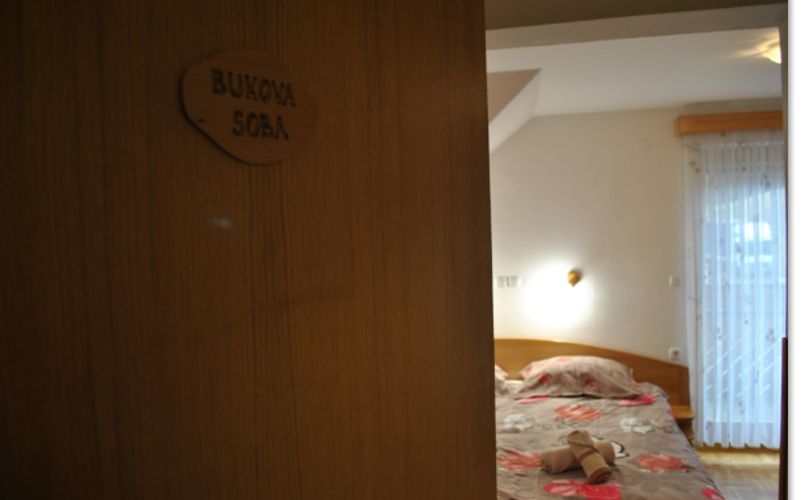 Bukova soba z balkonom ima eno zakonski posteljo, možnost dodatnega ležišča, wc , tuš kabino in balkonom. Privoščite si lahko tudi pristne zgornjesavinjske kulinarične specialitete.